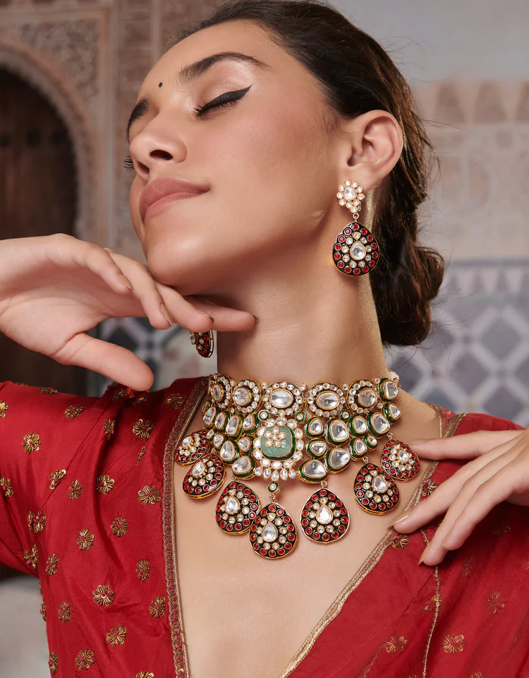 Sabyasachi Inspired Double Layered Mossainite Polki Set