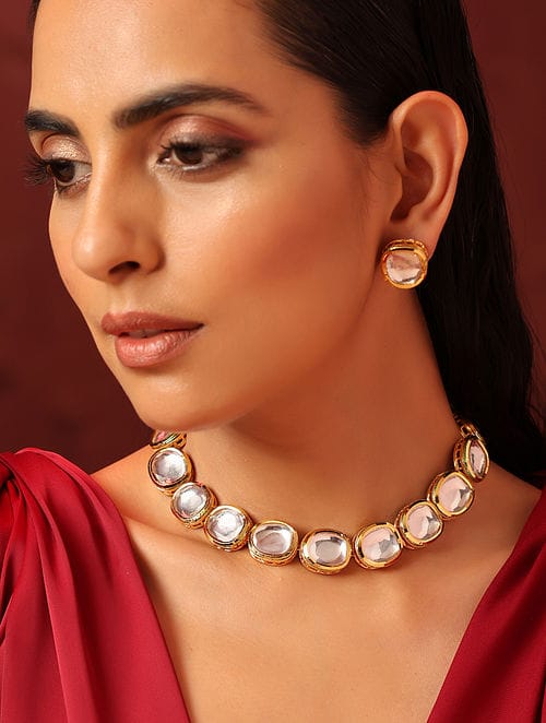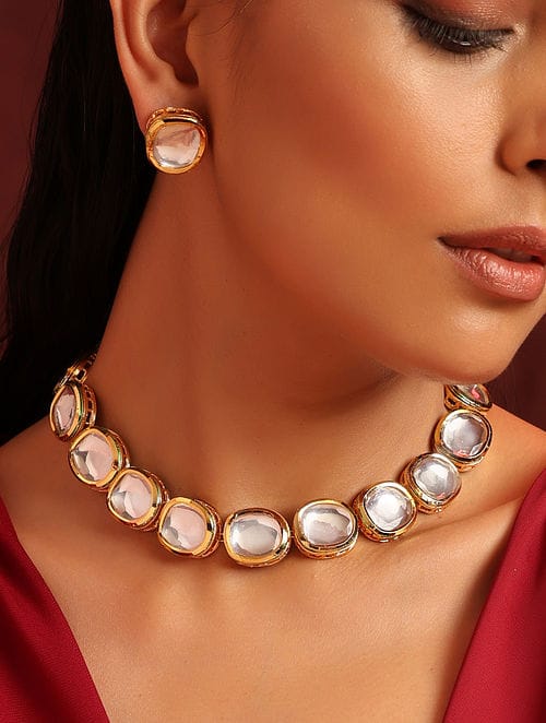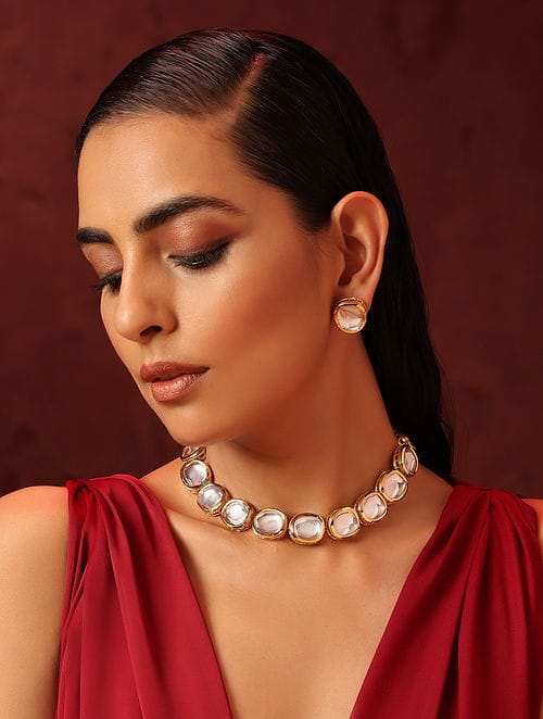 Gold Plated Ethnic Kundan Pearl Traditional Choker Necklace