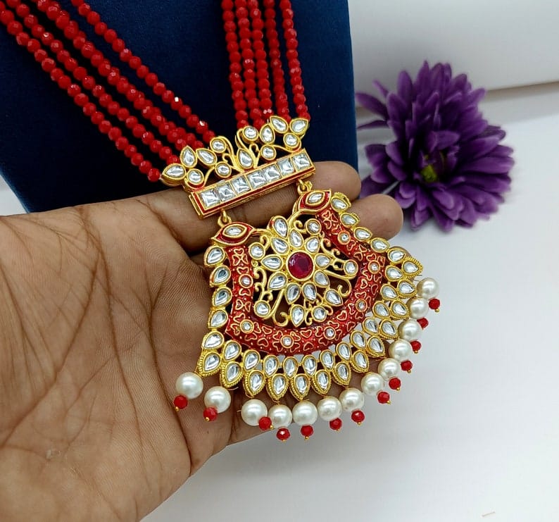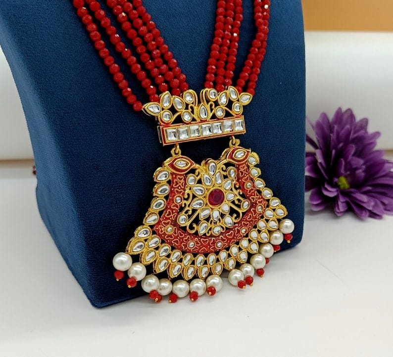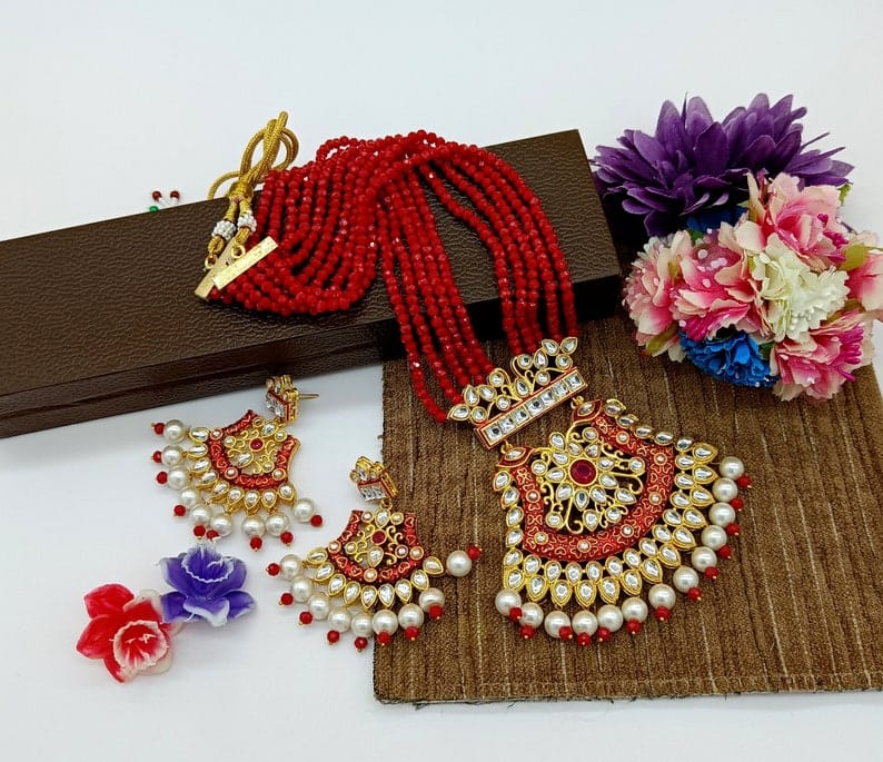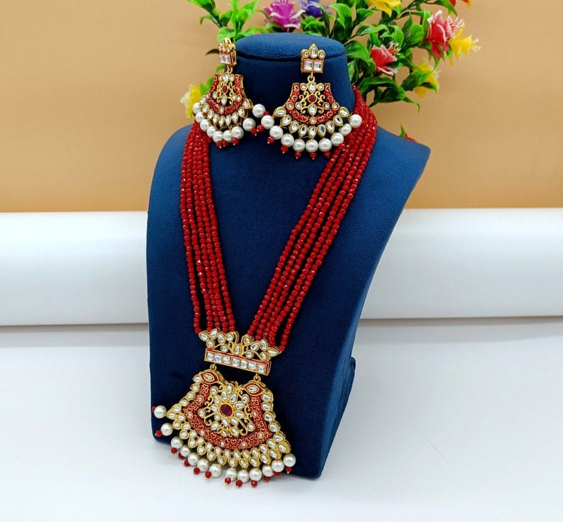 Victorian Uncut Polki Faux Diamond Necklace & Earring Set