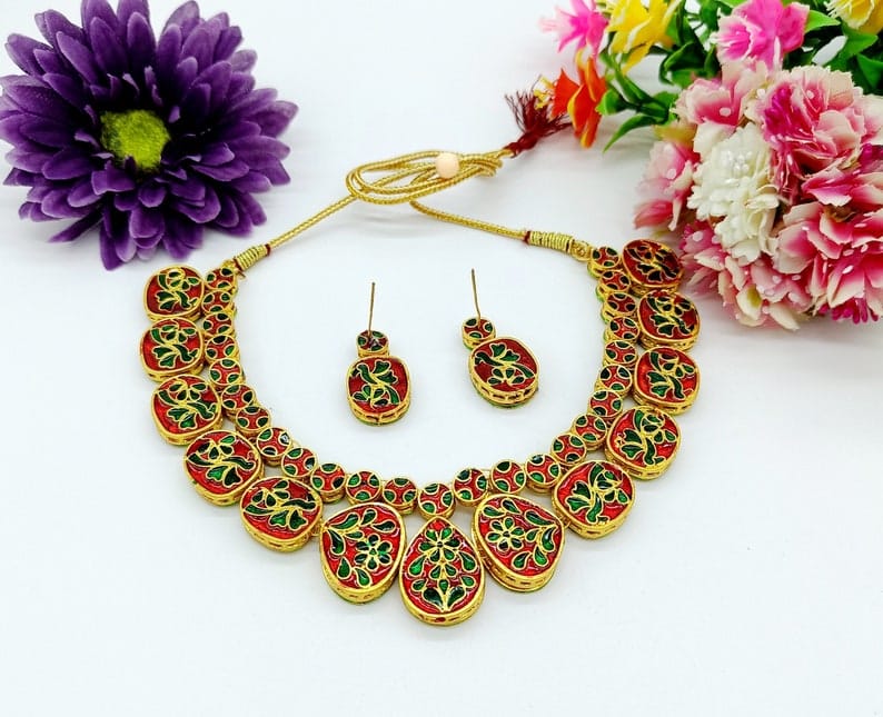 Heavy Meenakari Kundan With Emarald Green Drop Stone Necklace