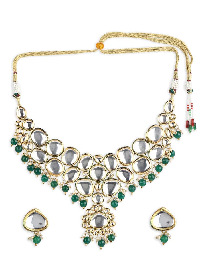 Gold Plated Stones Studded & Beaded Jewellery Set