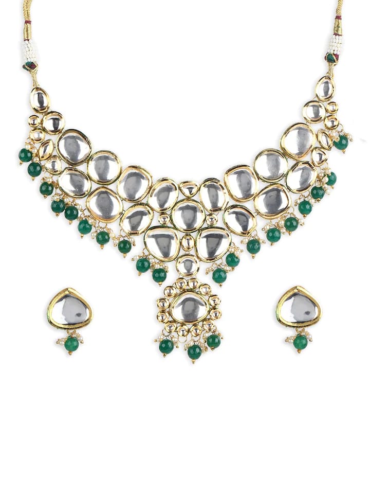 Gold-Plated Kundan-Studded & Beaded Nacklace