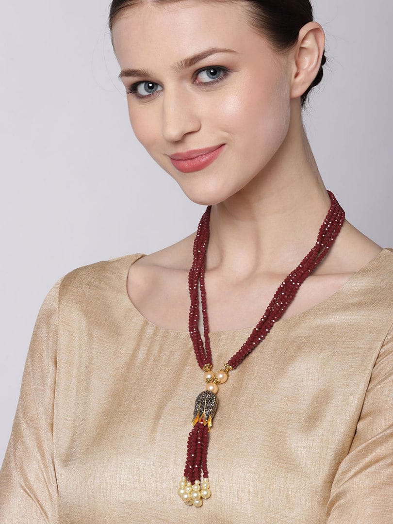 Gold-Plated Kundan-Studded & Beaded Nacklace