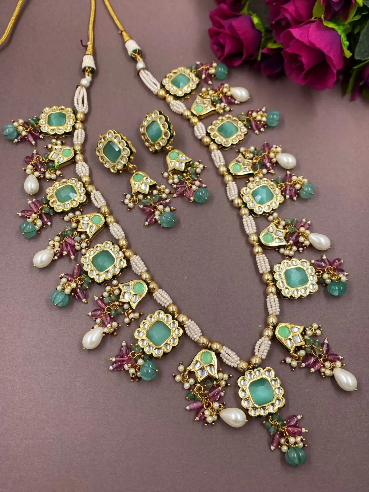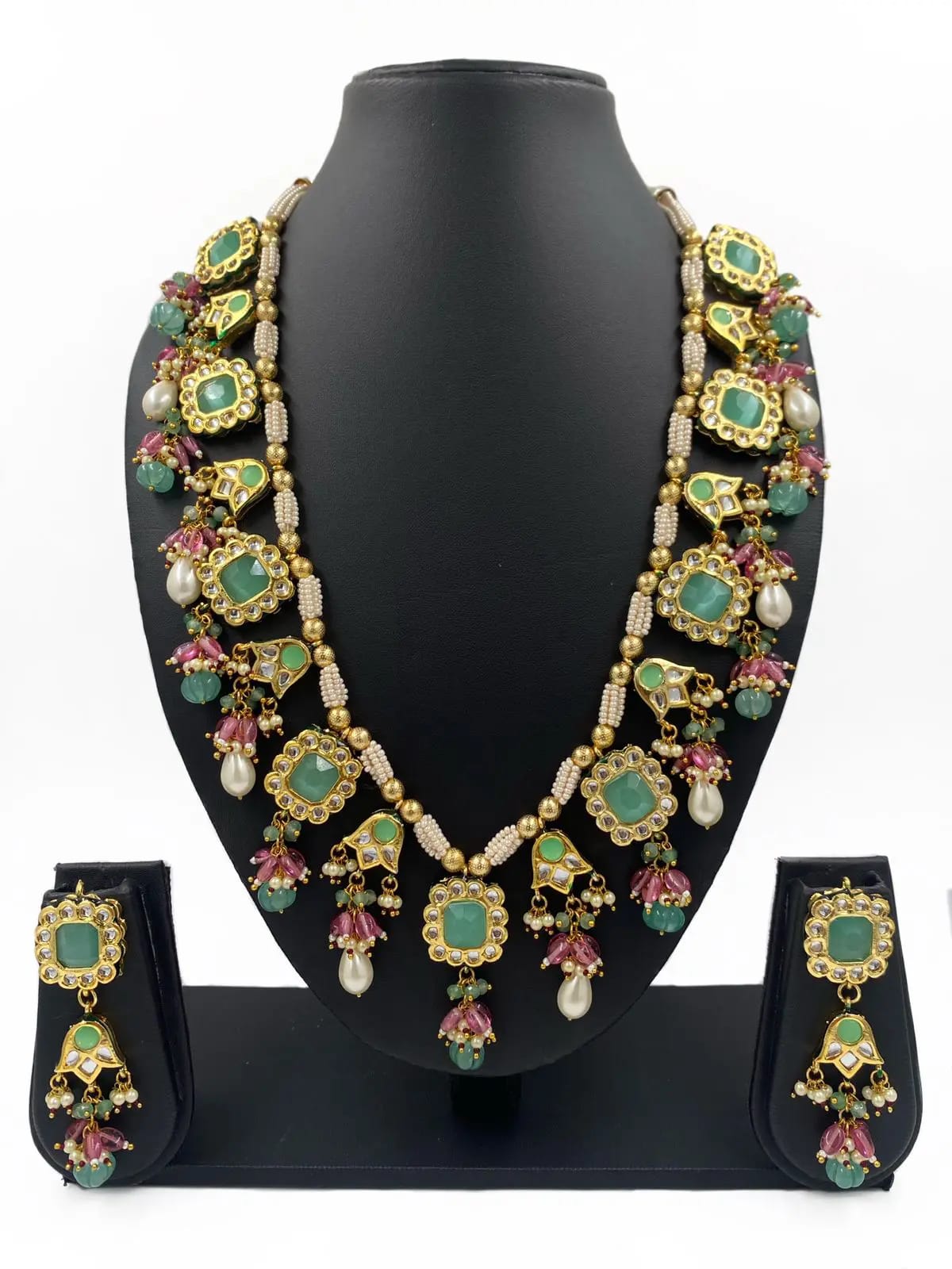 Victorian Uncut Polki Faux Diamond Necklace & Earring Set