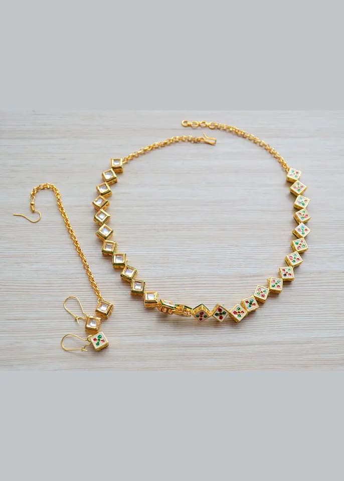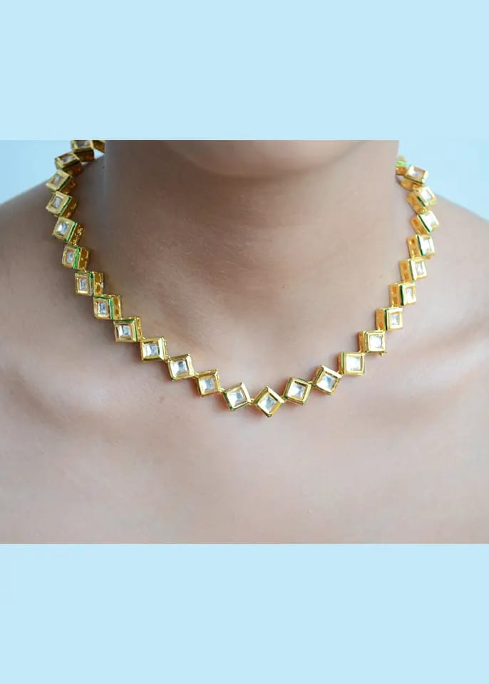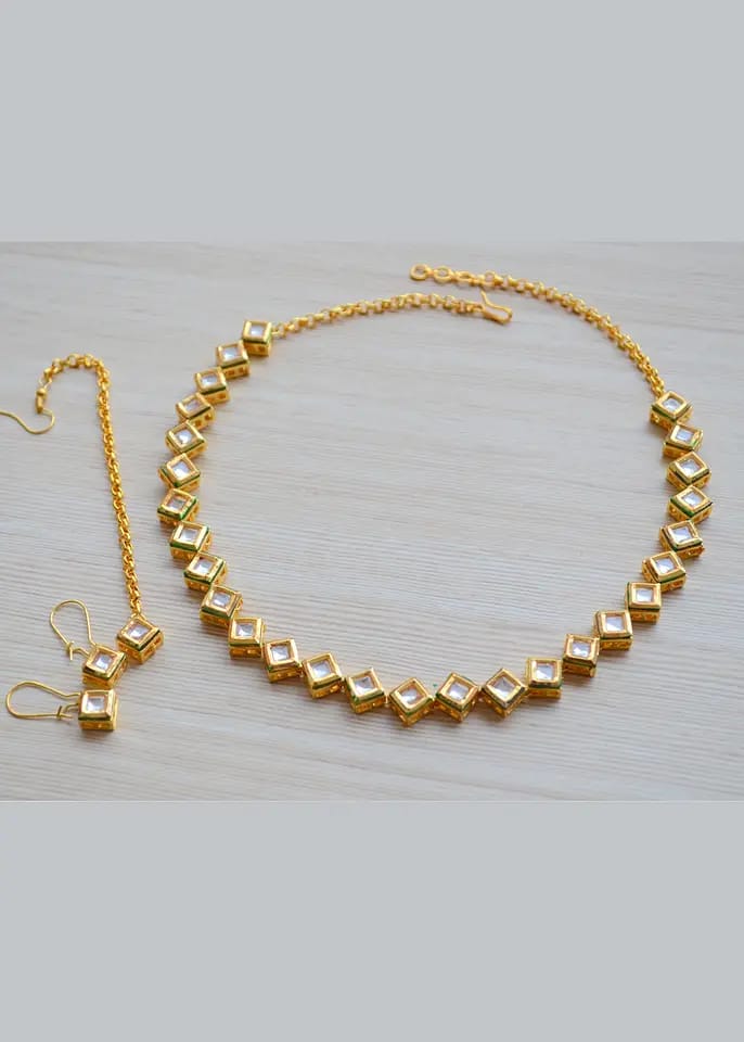 Victorian Uncut Polki Faux Diamond Necklace & Earring Set