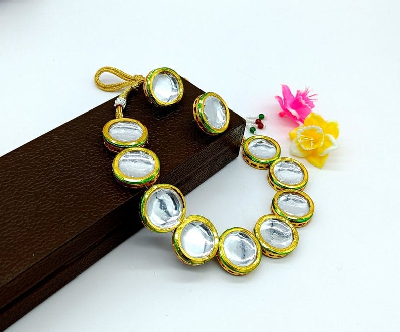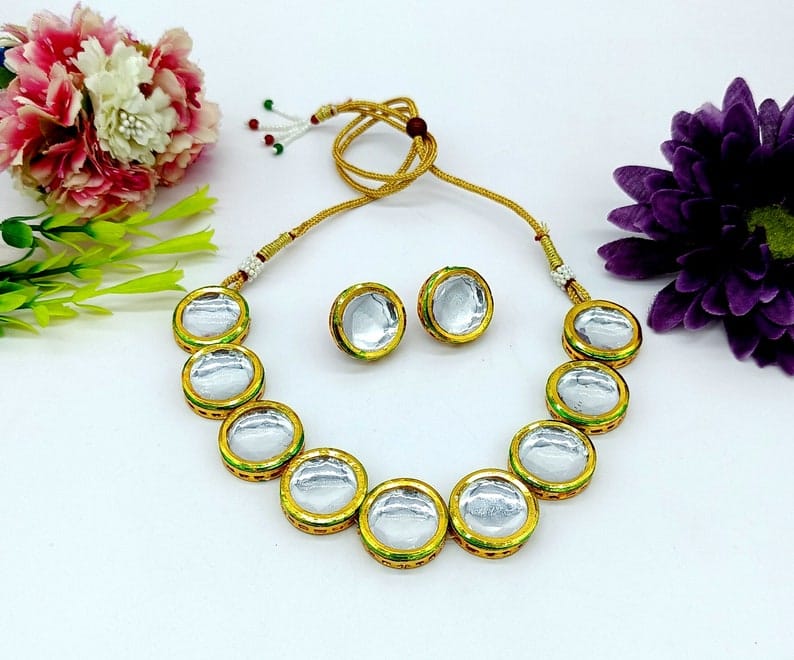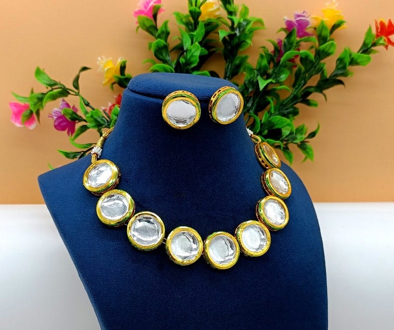 Designer Pearl Beaded Kundan Choker Necklace With Earrings