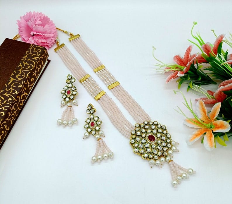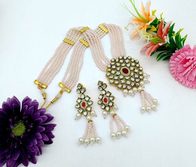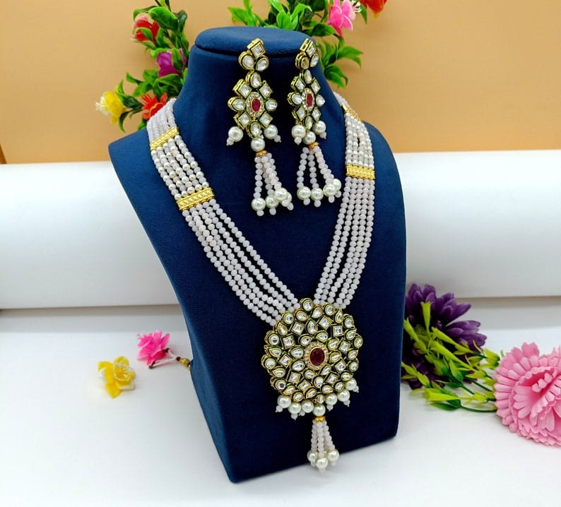 Gold Plated Stones Studded & Beaded Jewellery Set