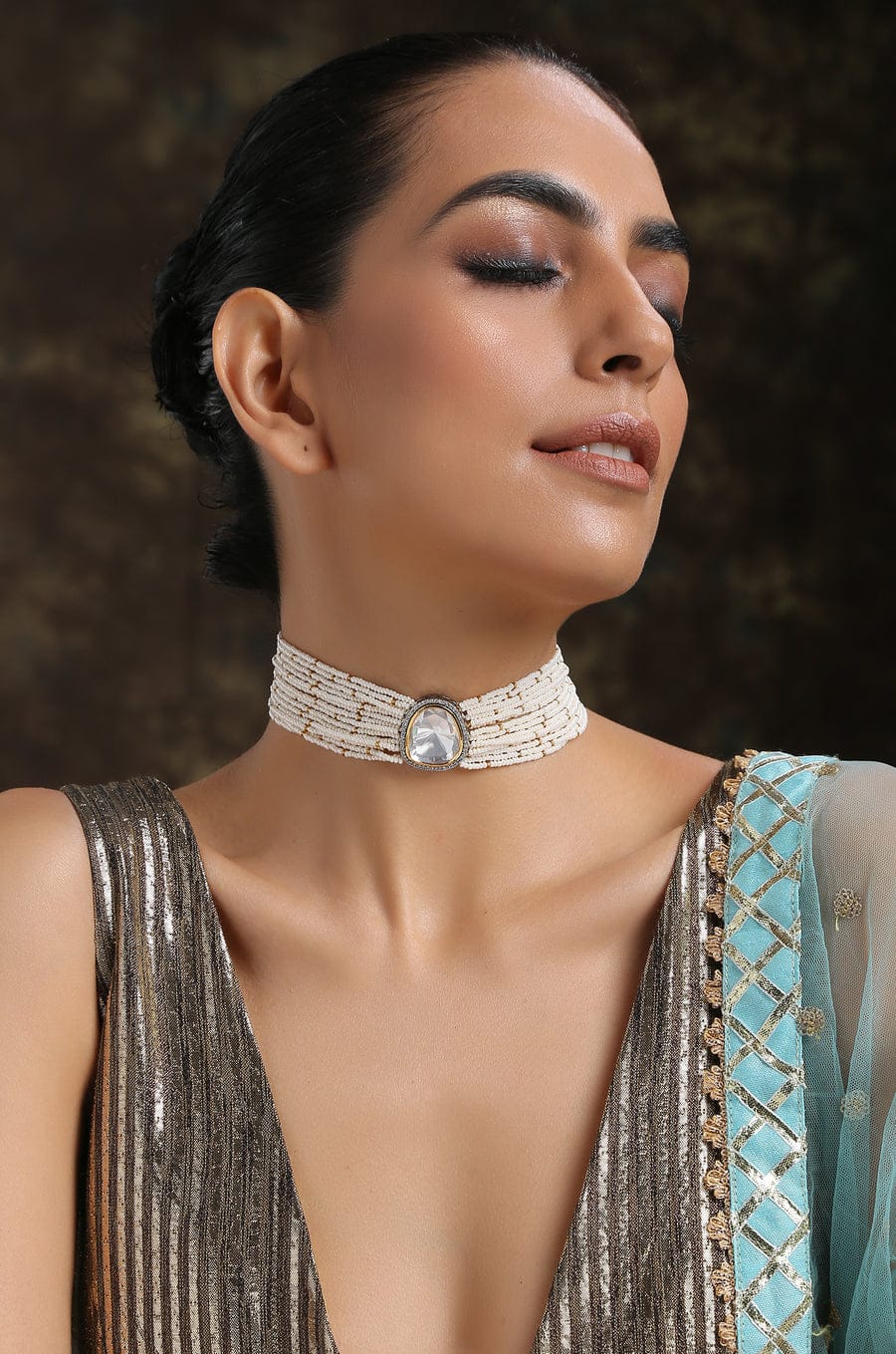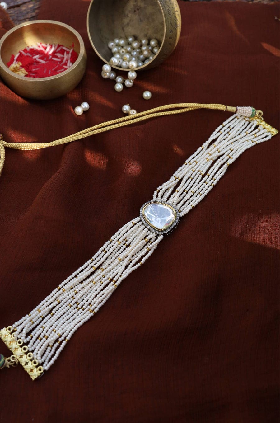 Gold-Plated Kundan-Studded & Beaded Nacklace