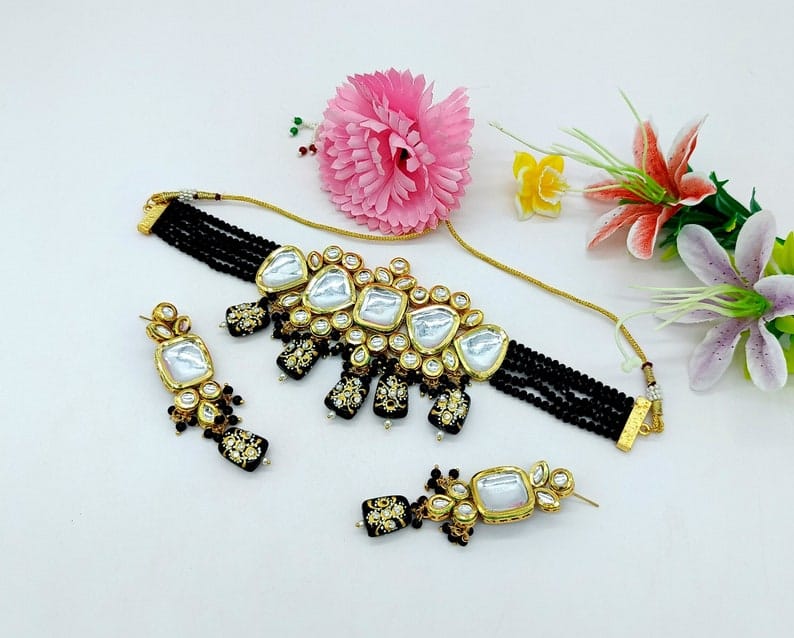 Victorian Uncut Polki Faux Diamond Necklace & Earring Set