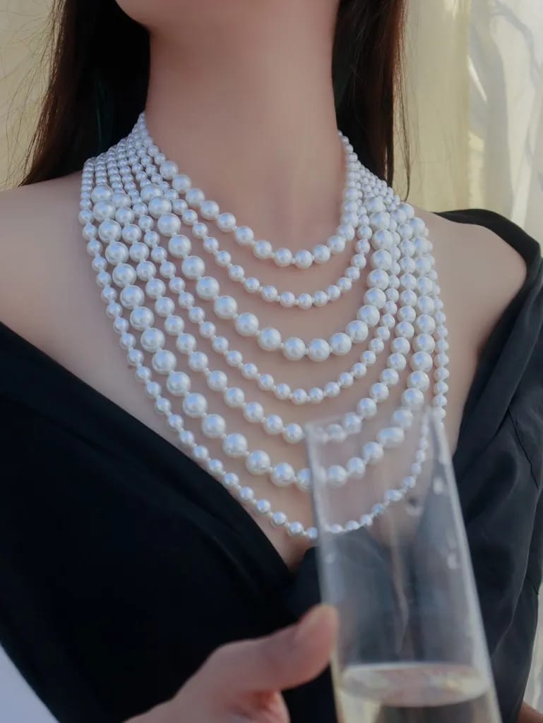 Green Fresh Water Pearls Stones Embellished Multi Layered Necklace