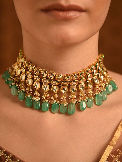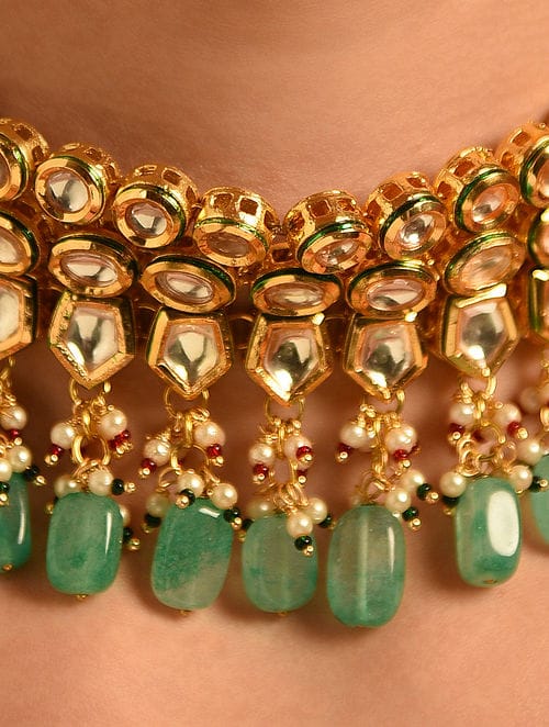 Gold Plated Ethnic Kundan Pearl Traditional Choker Necklace