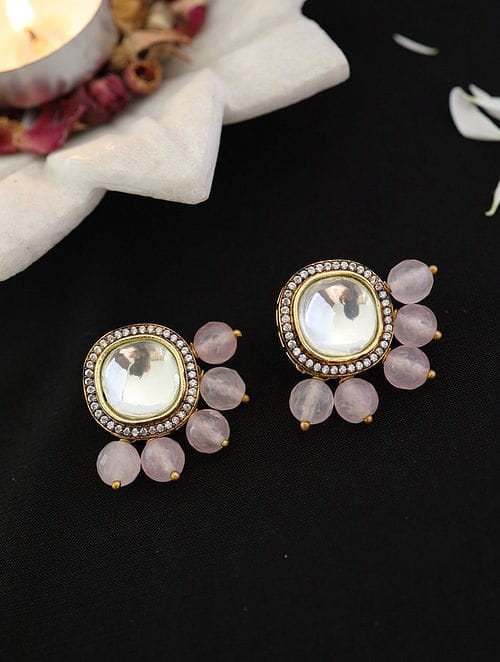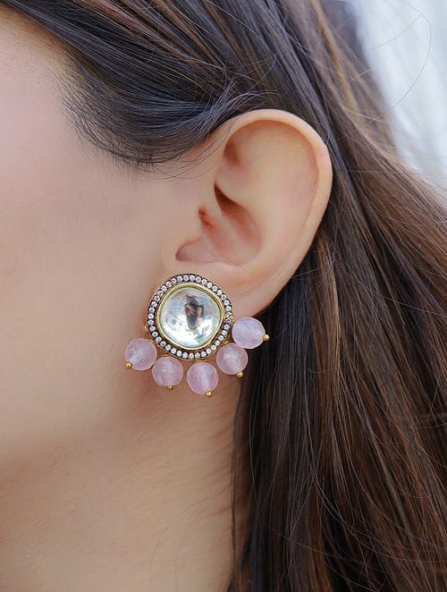 Silver Plated Rhodium Beaded Stud Earrings