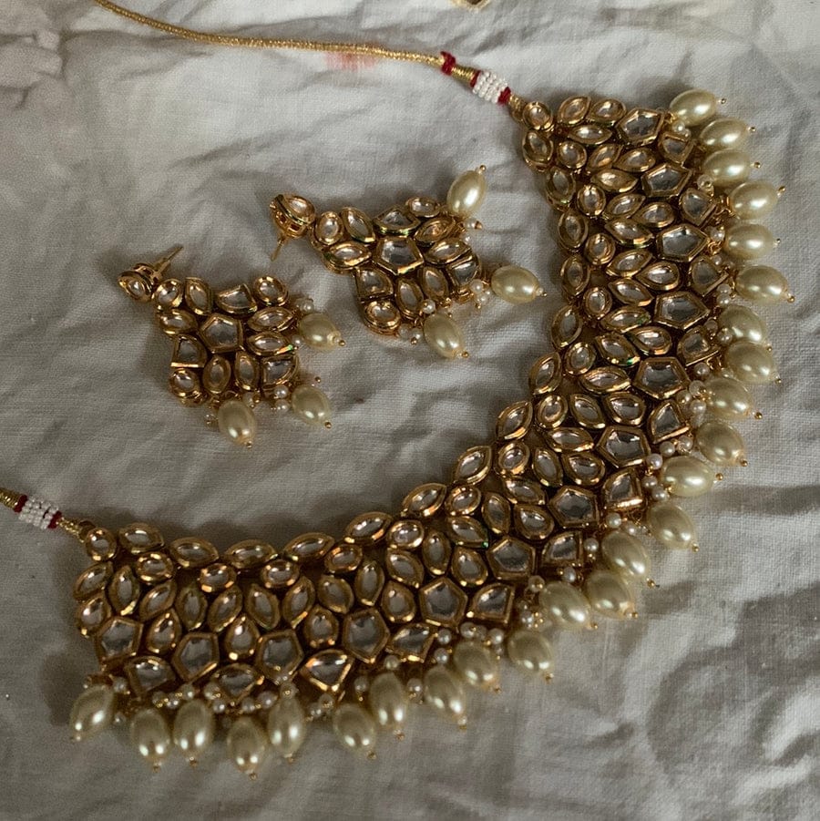 Victorian Uncut Polki Faux Diamond Necklace & Earring Set