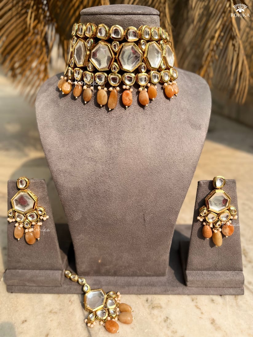 Victorian Uncut Polki Faux Diamond Necklace & Earring Set