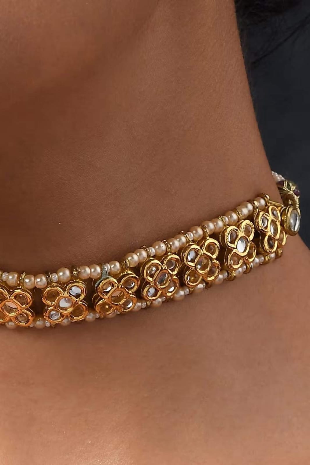 Gold Plated Ethnic Kundan Pearl Traditional Choker Necklace