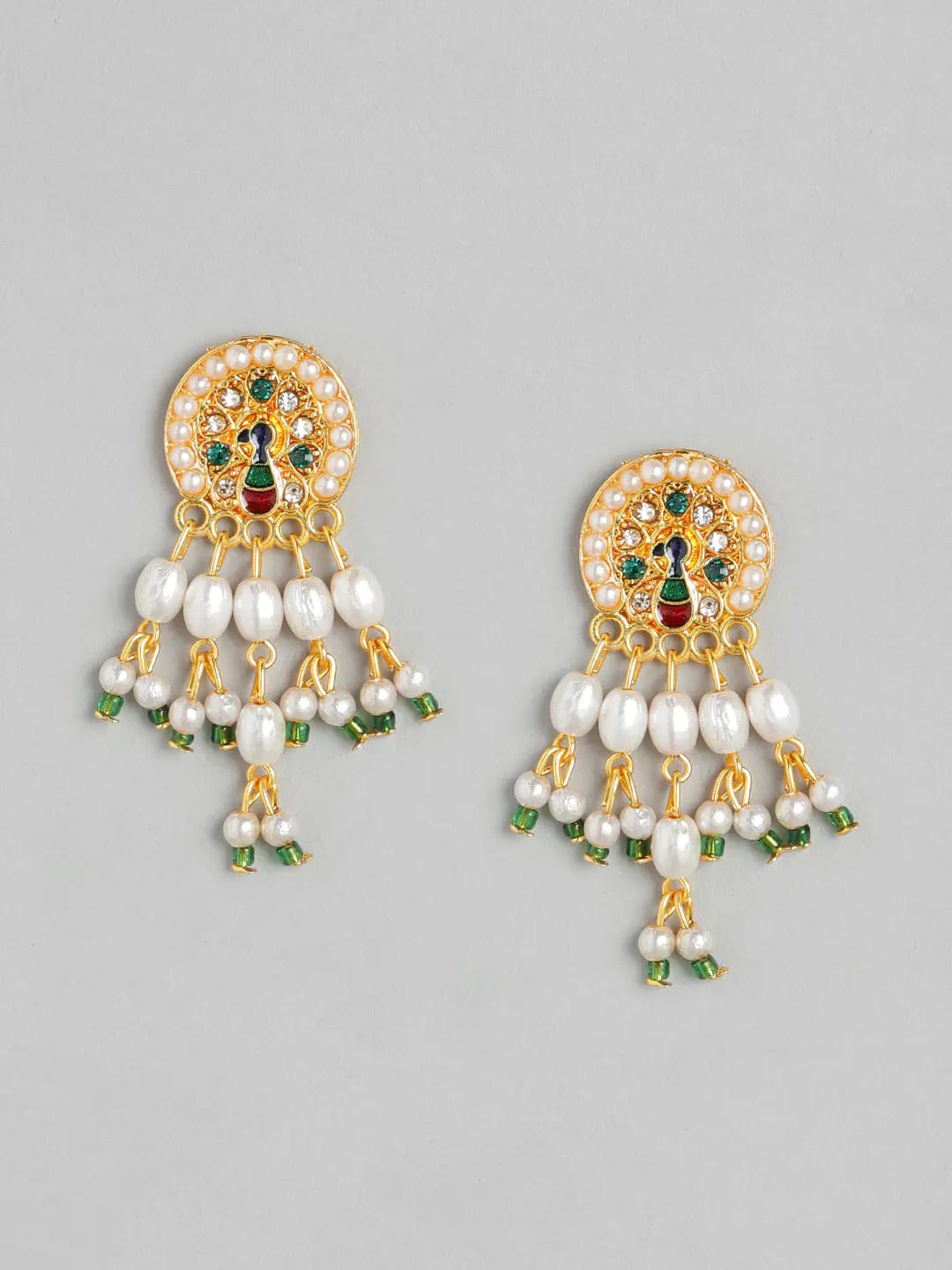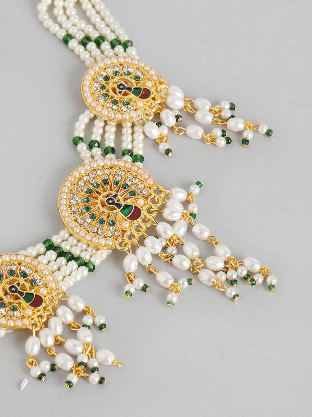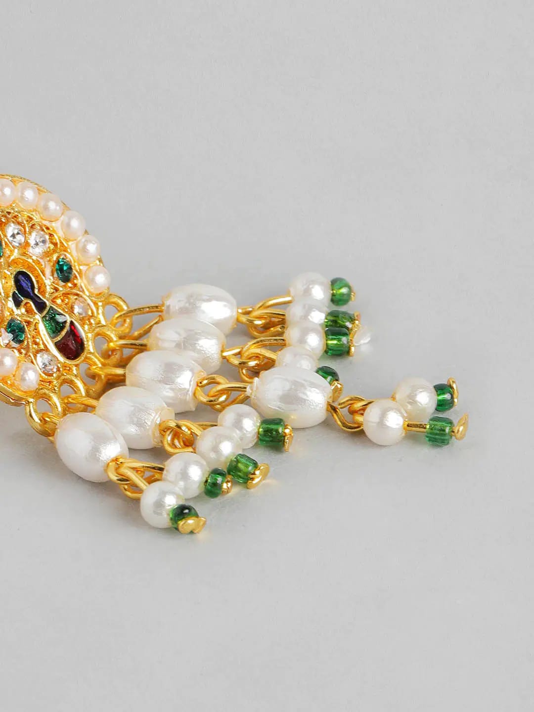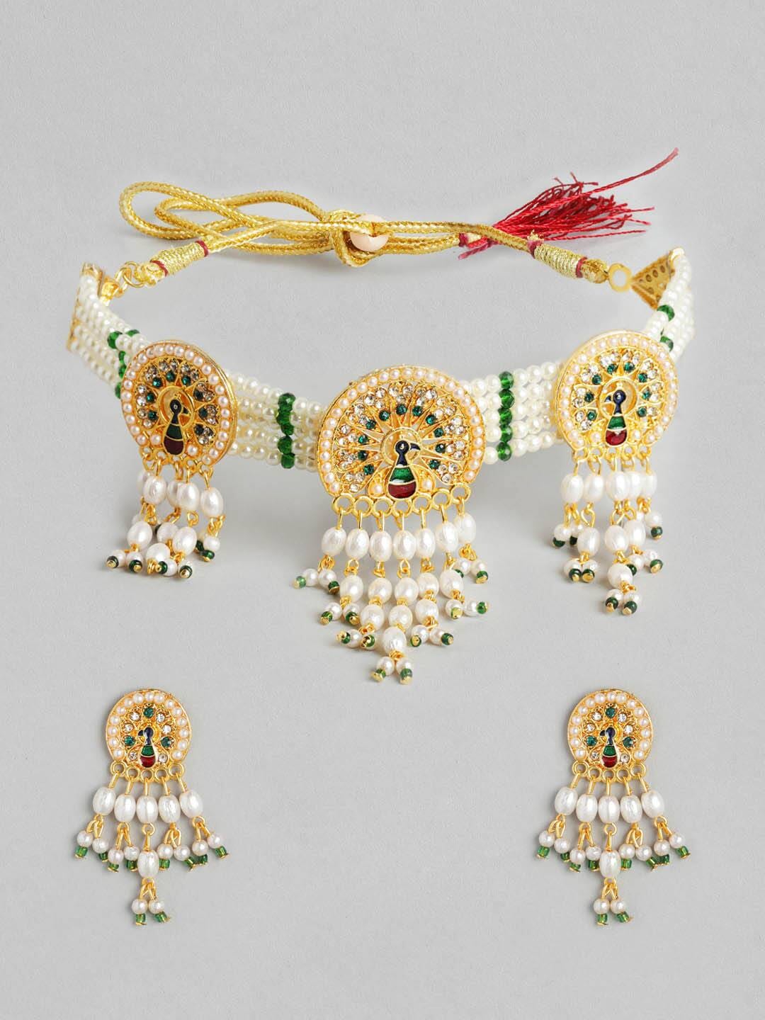 Gold Plated Pearl Studded Choker Necklace & Earrings Set