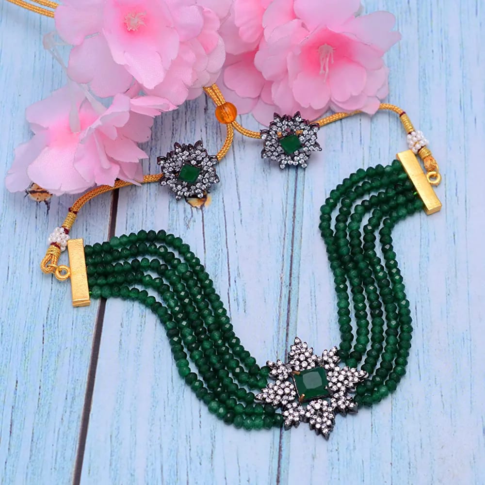 Gold Plated Stones Studded & Beaded Jewellery Set