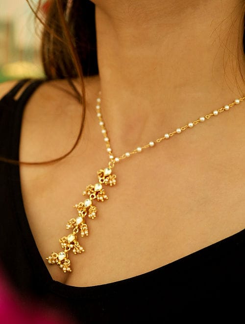 Gold-Plated Sparkling Jaipuri Beads Necklace