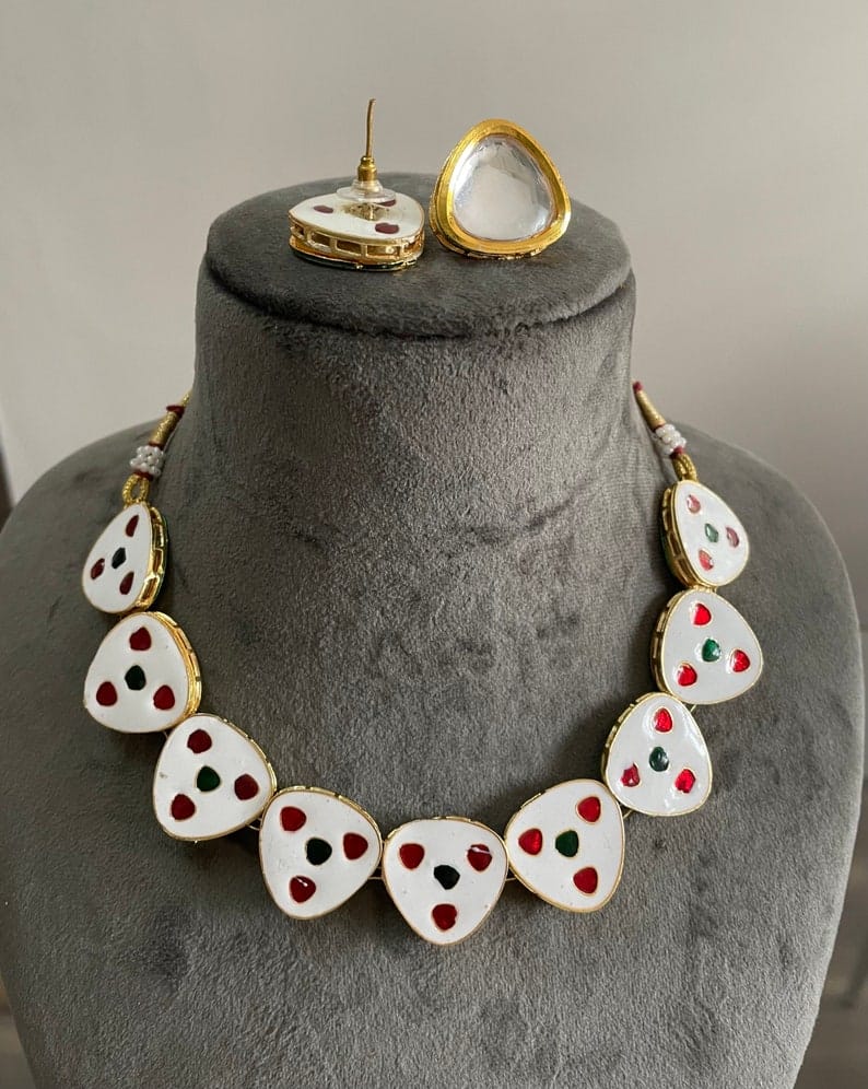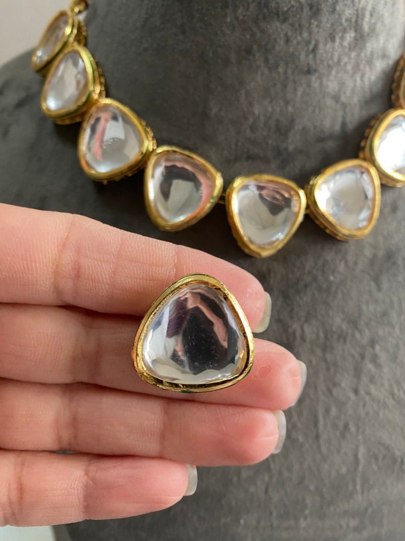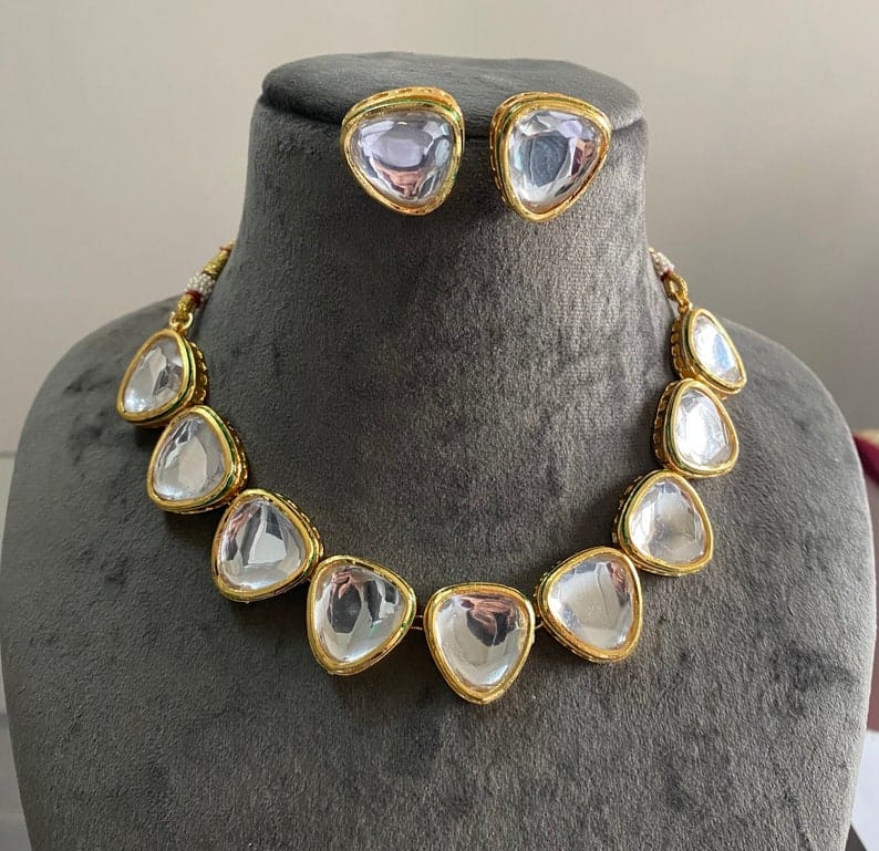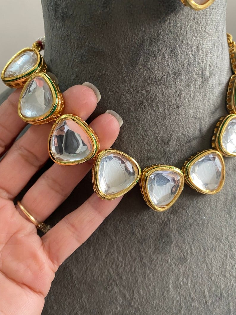 Victorian Uncut Polki Faux Diamond Necklace & Earring Set