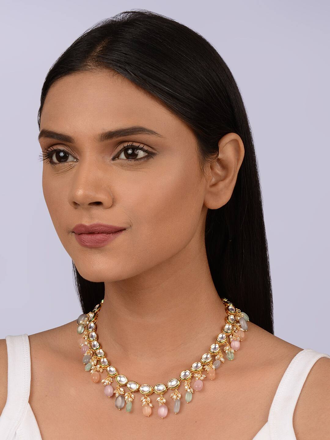 Gold Plated Stones Studded & Beaded Jewellery Set