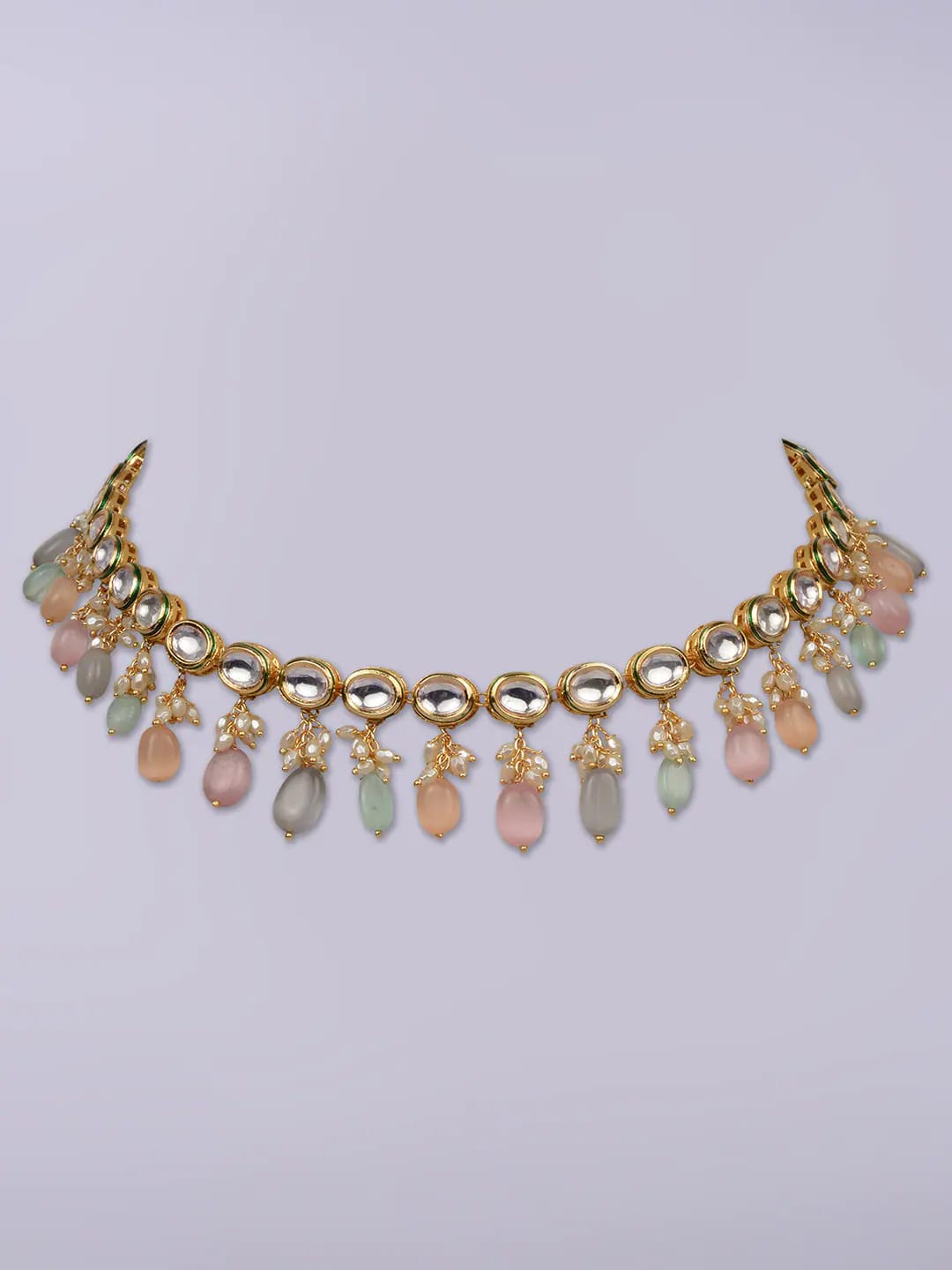 Victorian Uncut Polki Faux Diamond Necklace & Earring Set