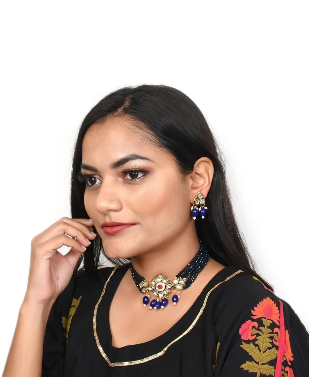 Gold-Plated Kundan-Studded & Beaded Nacklace