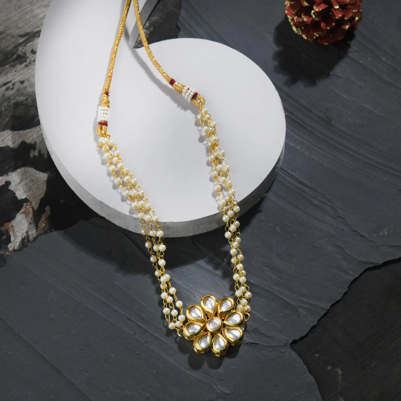 Green Fresh Water Pearls Stones Embellished Multi Layered Necklace