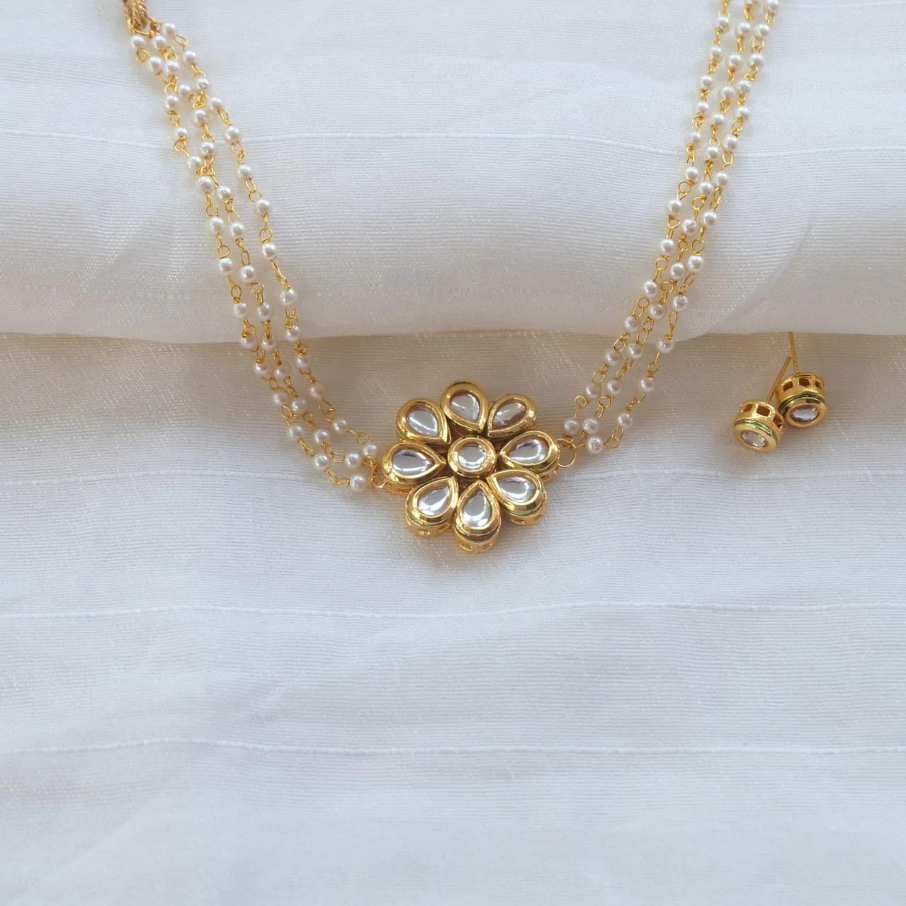 Gold Plated Pearl Studded Choker Necklace & Earrings Set
