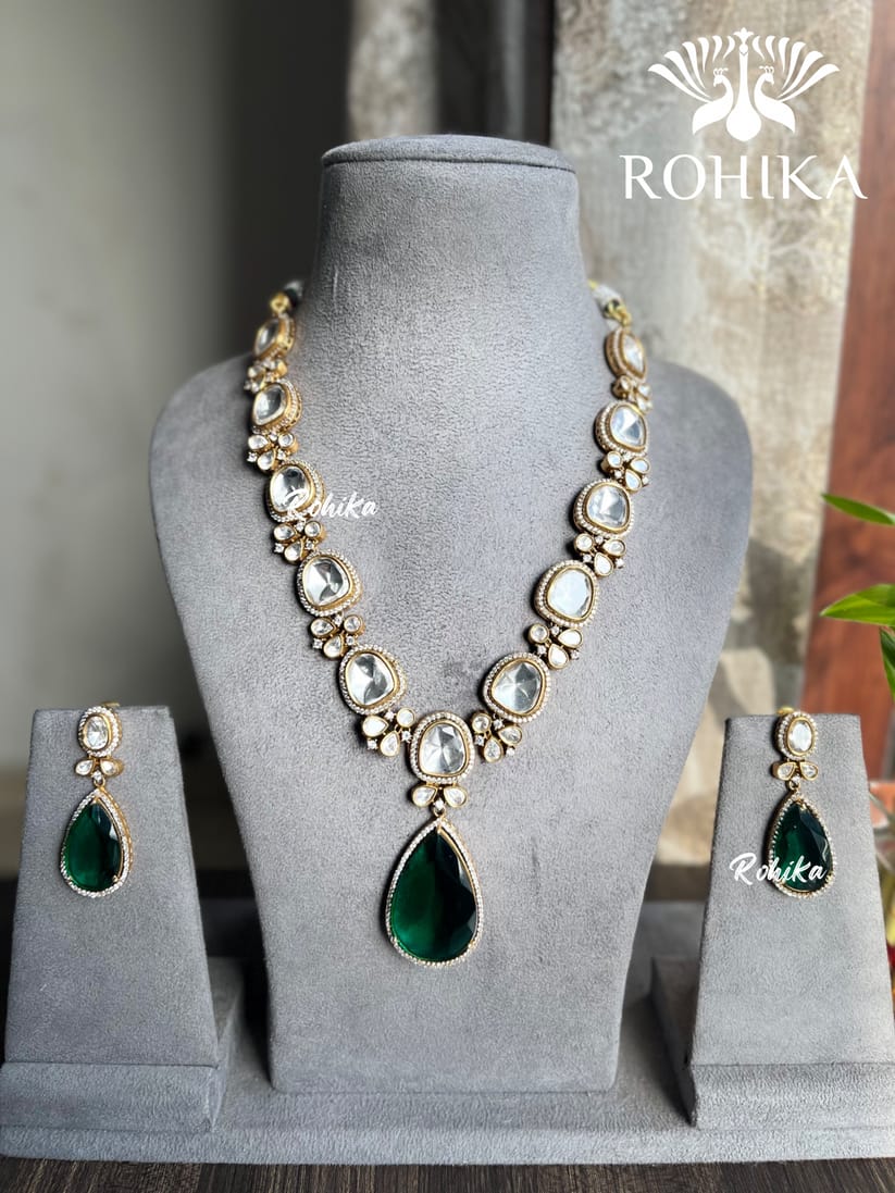 Victorian Uncut Polki Faux Diamond Necklace & Earring Set