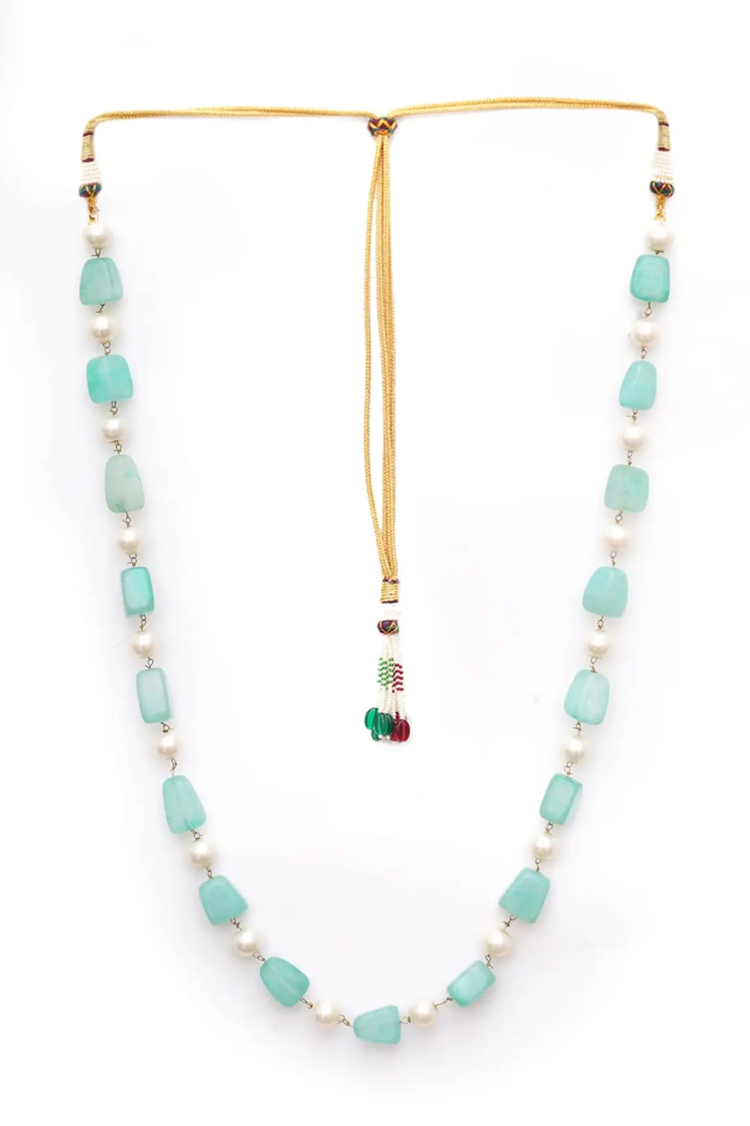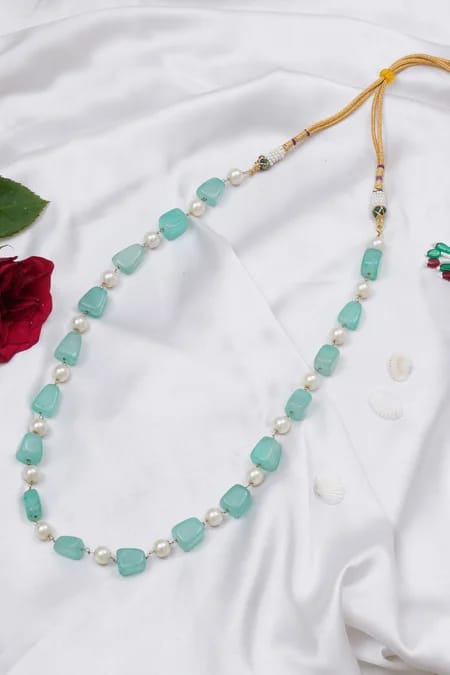 Be the first to review “Gold Finish Blue Faux Stone & Pearl Layered Mala”