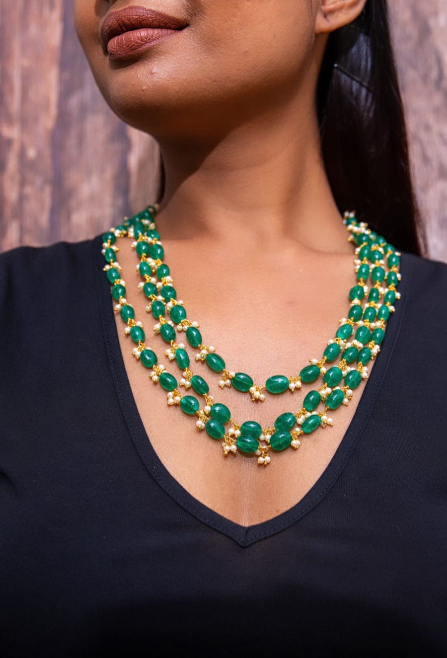 Green & White Stone Choker Set