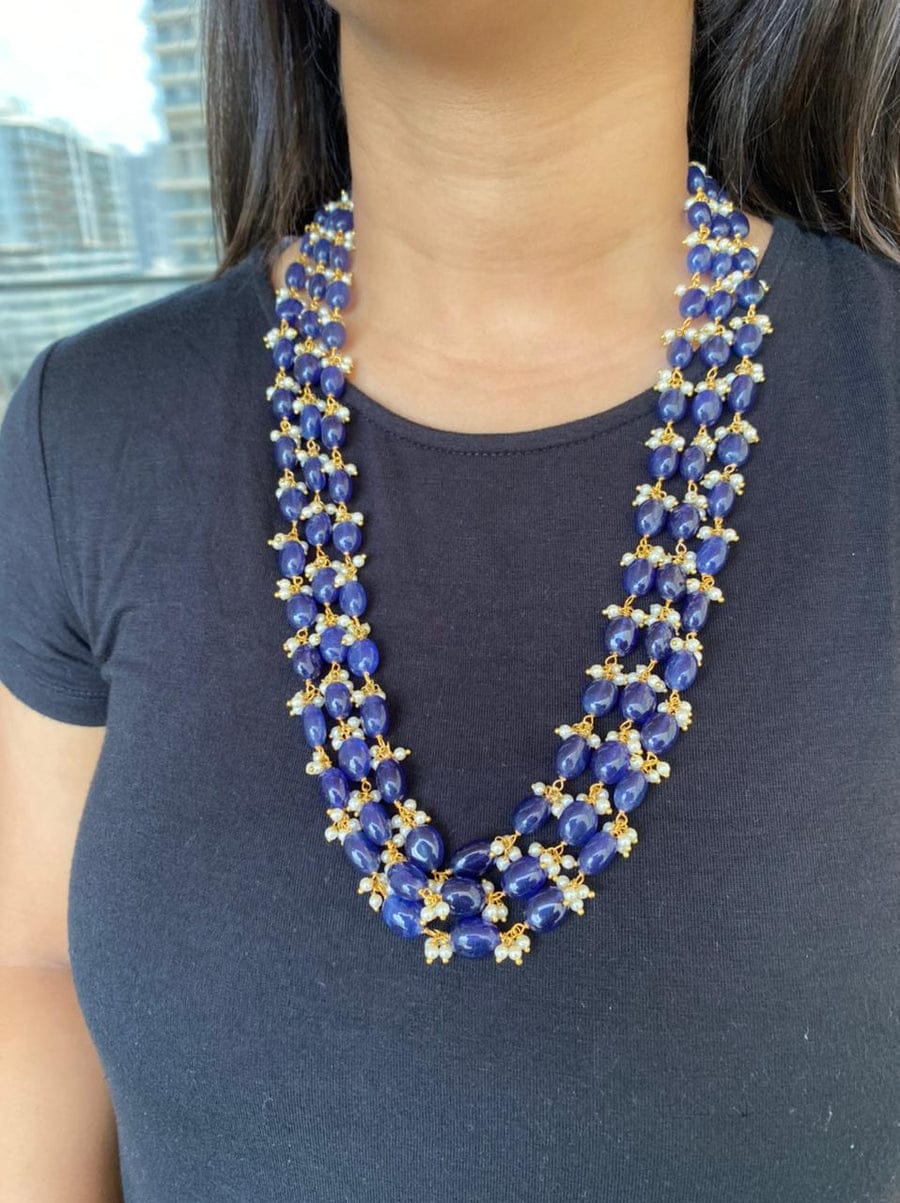 Green Fresh Water Pearls Stones Embellished Multi Layered Necklace