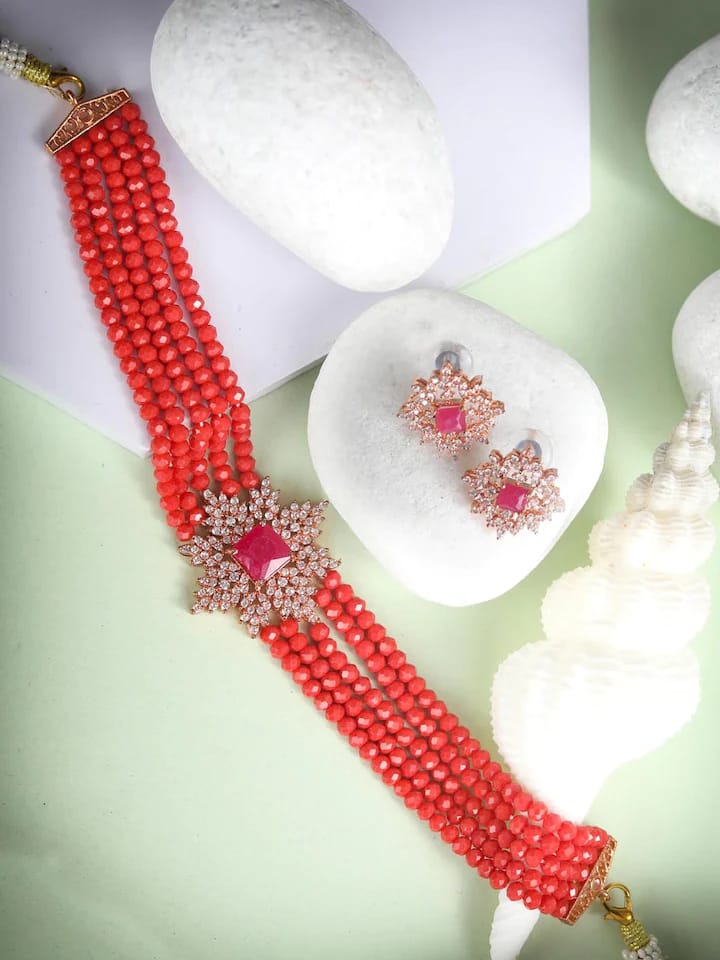 Gold Plated Stones Studded & Beaded Jewellery Set
