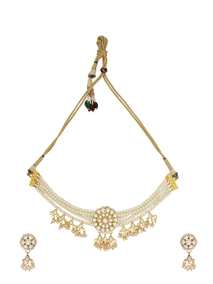 Designer Pearl Beaded Kundan Choker Necklace With Earrings
