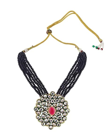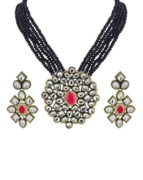 Gold Plated Stones Studded & Beaded Jewellery Set