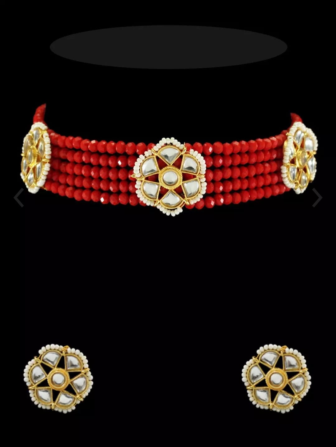 Designer Pearl Beaded Kundan Choker Necklace With Earrings