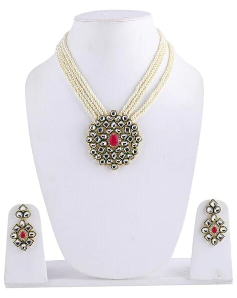 Designer Pearl Beaded Kundan Choker Necklace With Earrings
