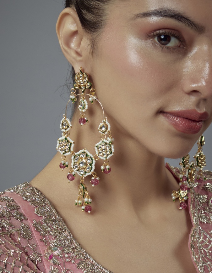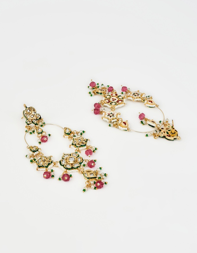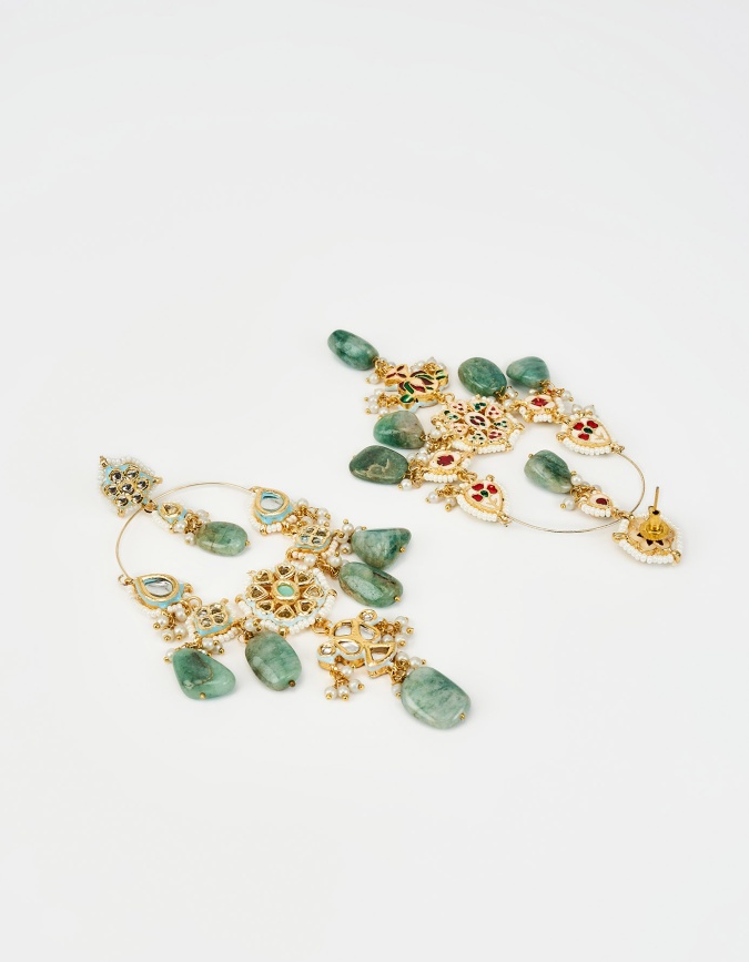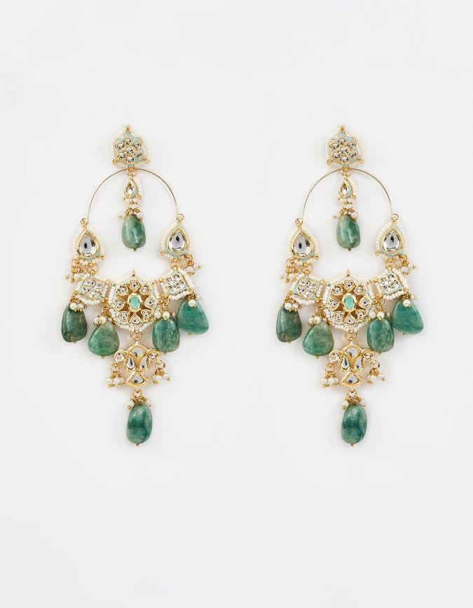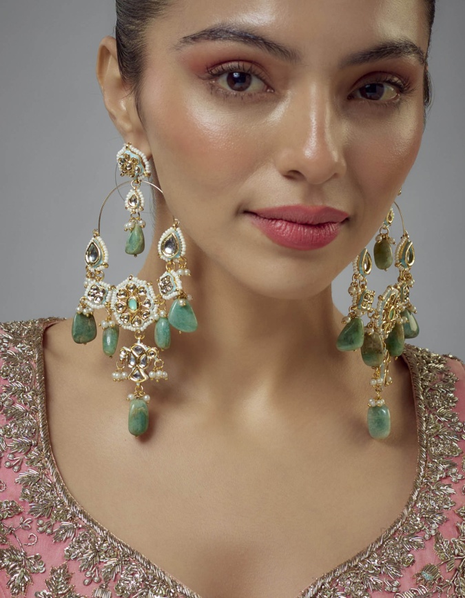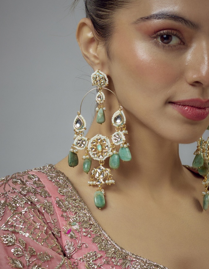 Be the first to review “Gold Finish Green Kundan Polki & Pearl Jhumka Earrings”