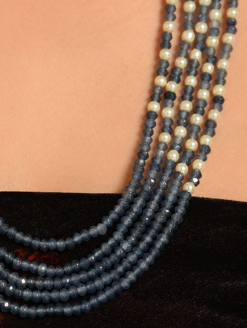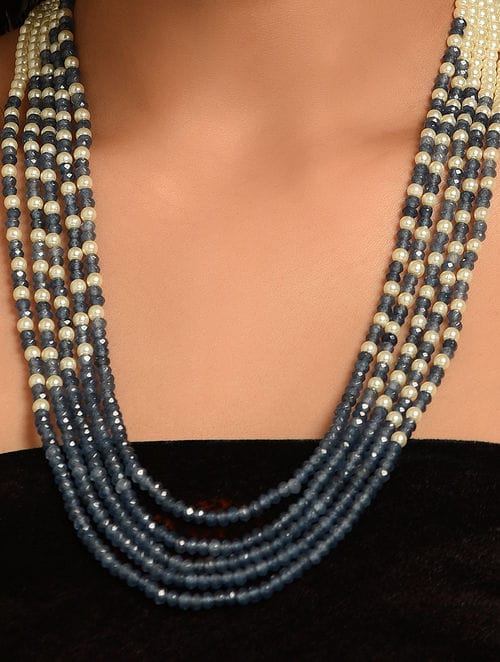 Green Fresh Water Pearls Stones Embellished Multi Layered Necklace