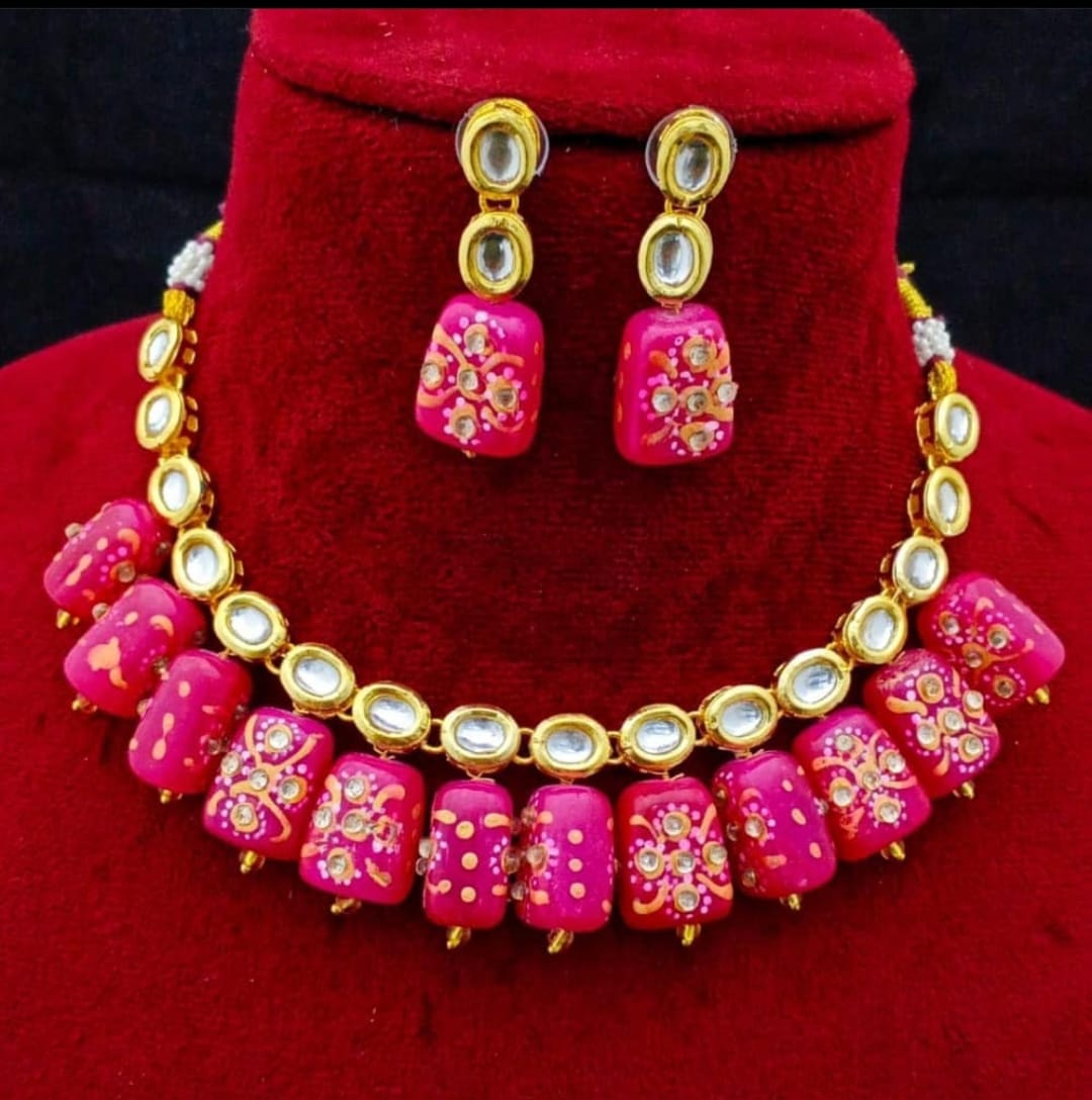 Gold-Plated Kundan-Studded & Beaded Nacklace