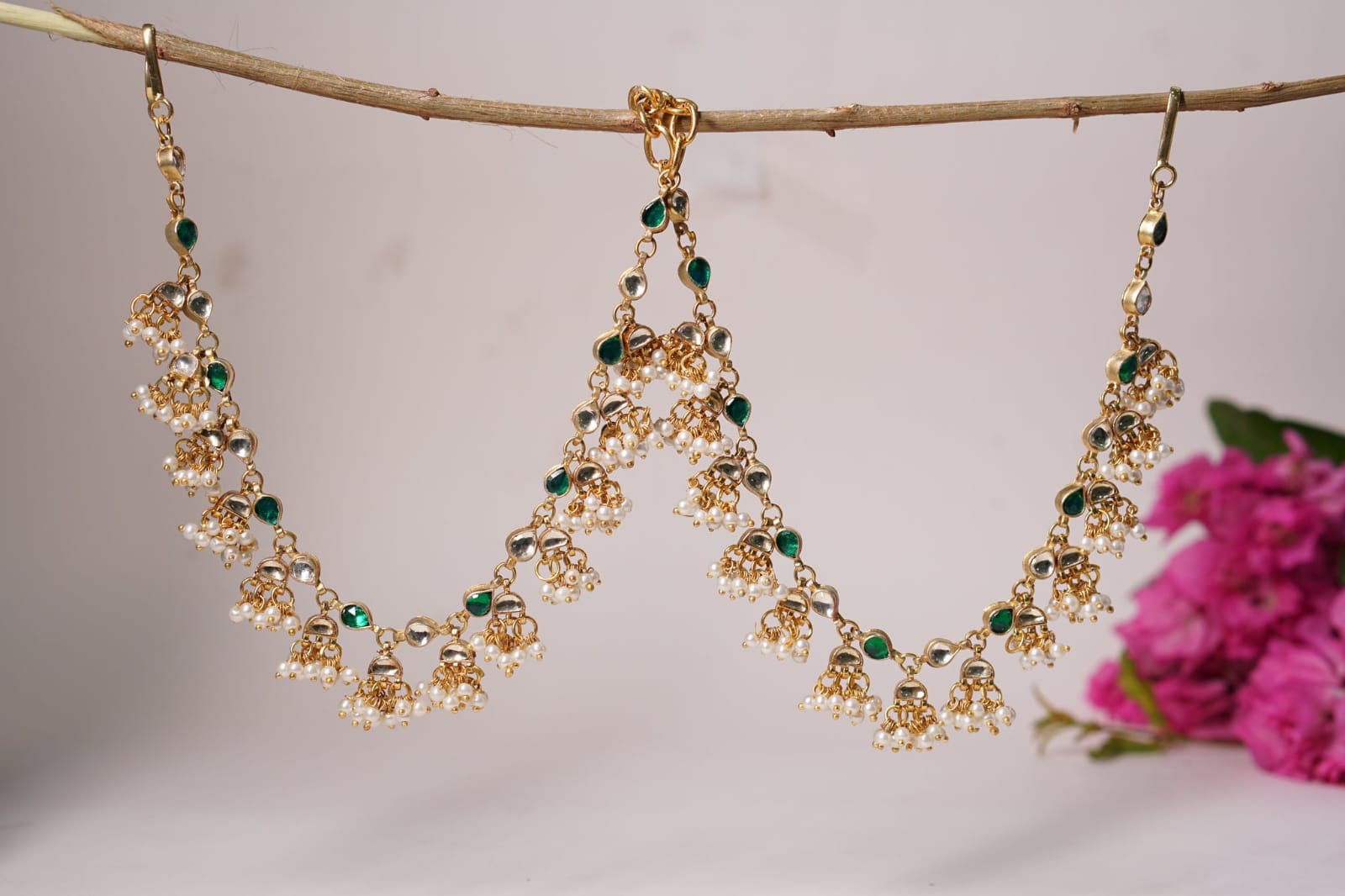 Delicate Pearl & Kundan Ear chain