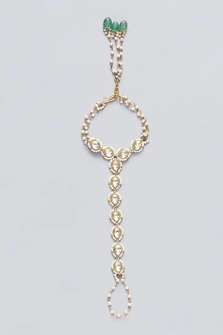 Gold Finish Kundan Polki & Pearl Haath Phool (Set Of 2)