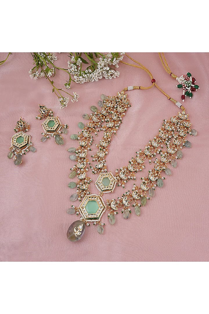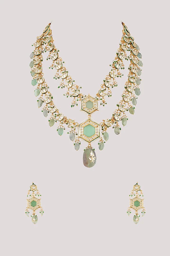 Be the first to review “Gold Finish Kundan Polki Layered Necklace Set”