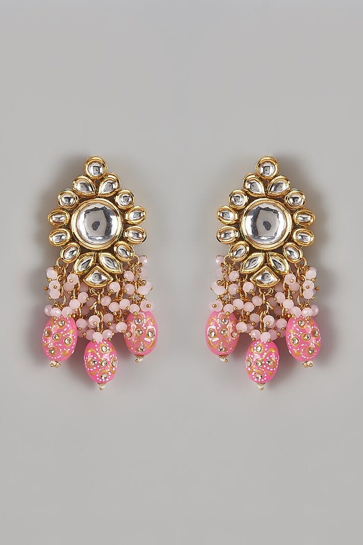 Be the first to review “Gold Finish Kundan Polki & Pink Beaded Dangler Earrings”