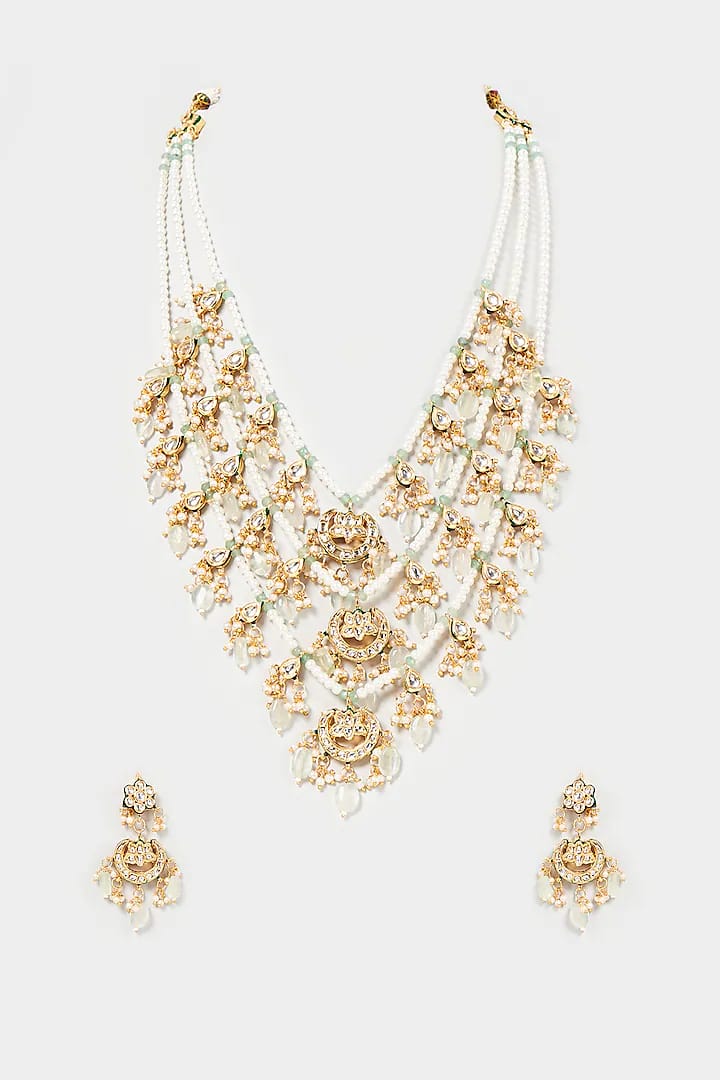 Designer Pearl Beaded Kundan Choker Necklace With Earrings