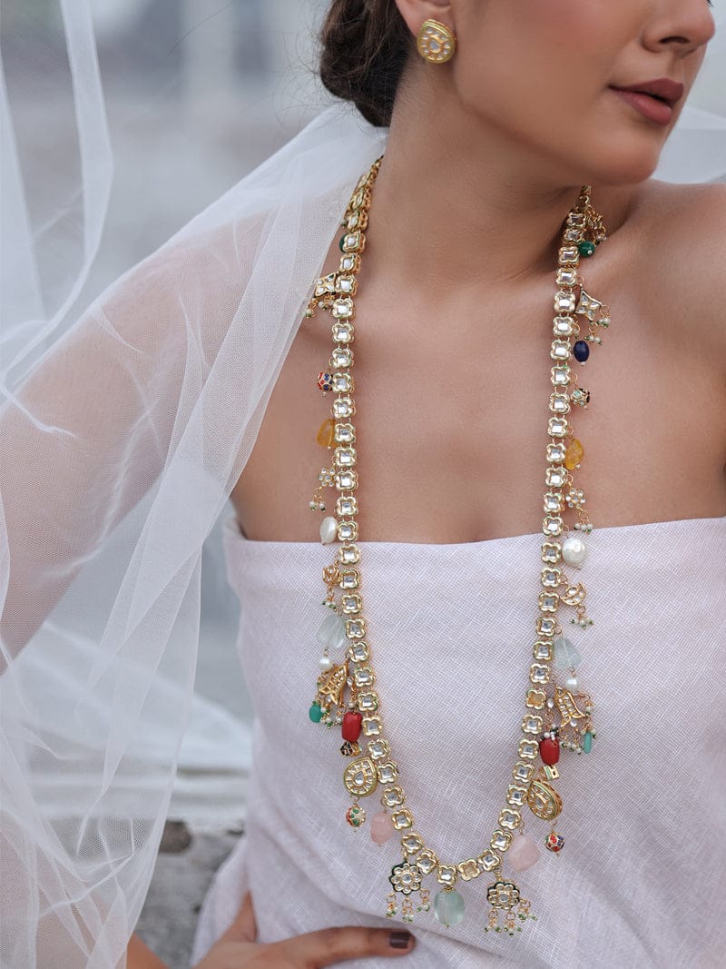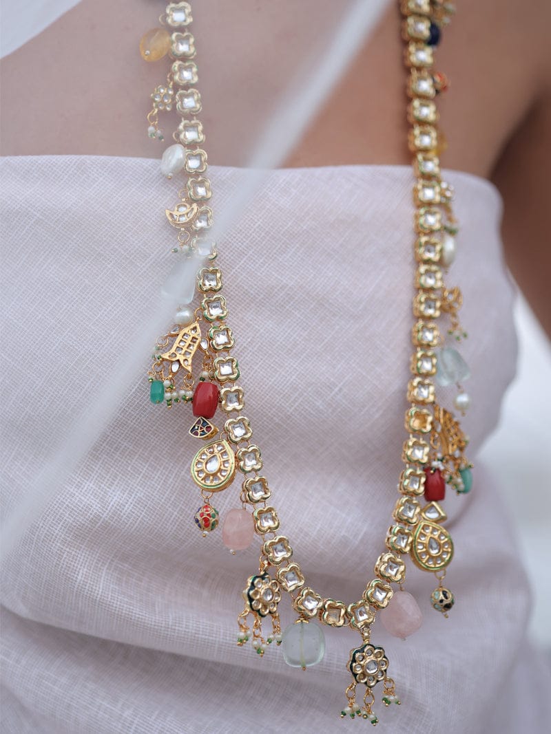 Gold Finish Multi Kundan Polki Handcrafted Necklace Set