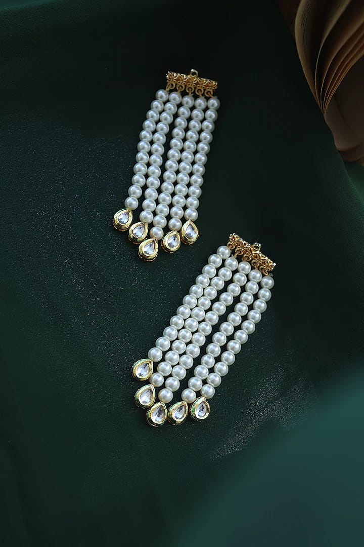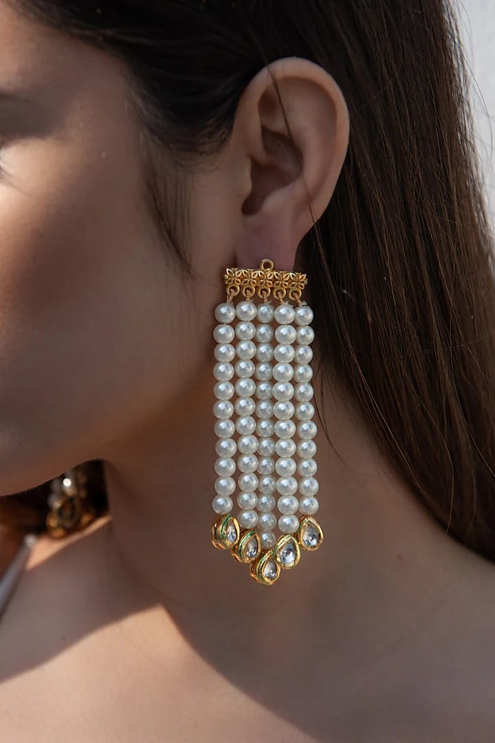 Gold Finish Pearl & Kundan Polki Dangler Earrings