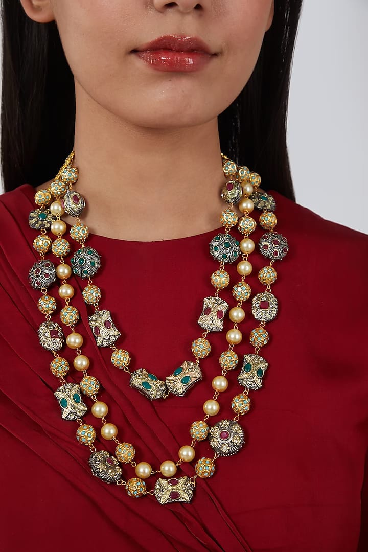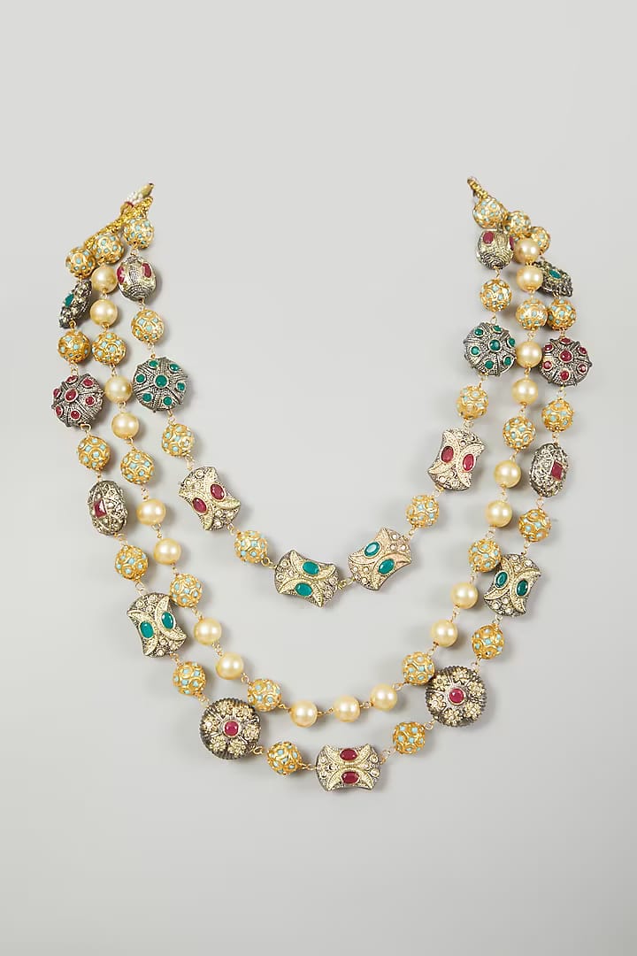 Gold-Plated Sparkling Jaipuri Beads Necklace