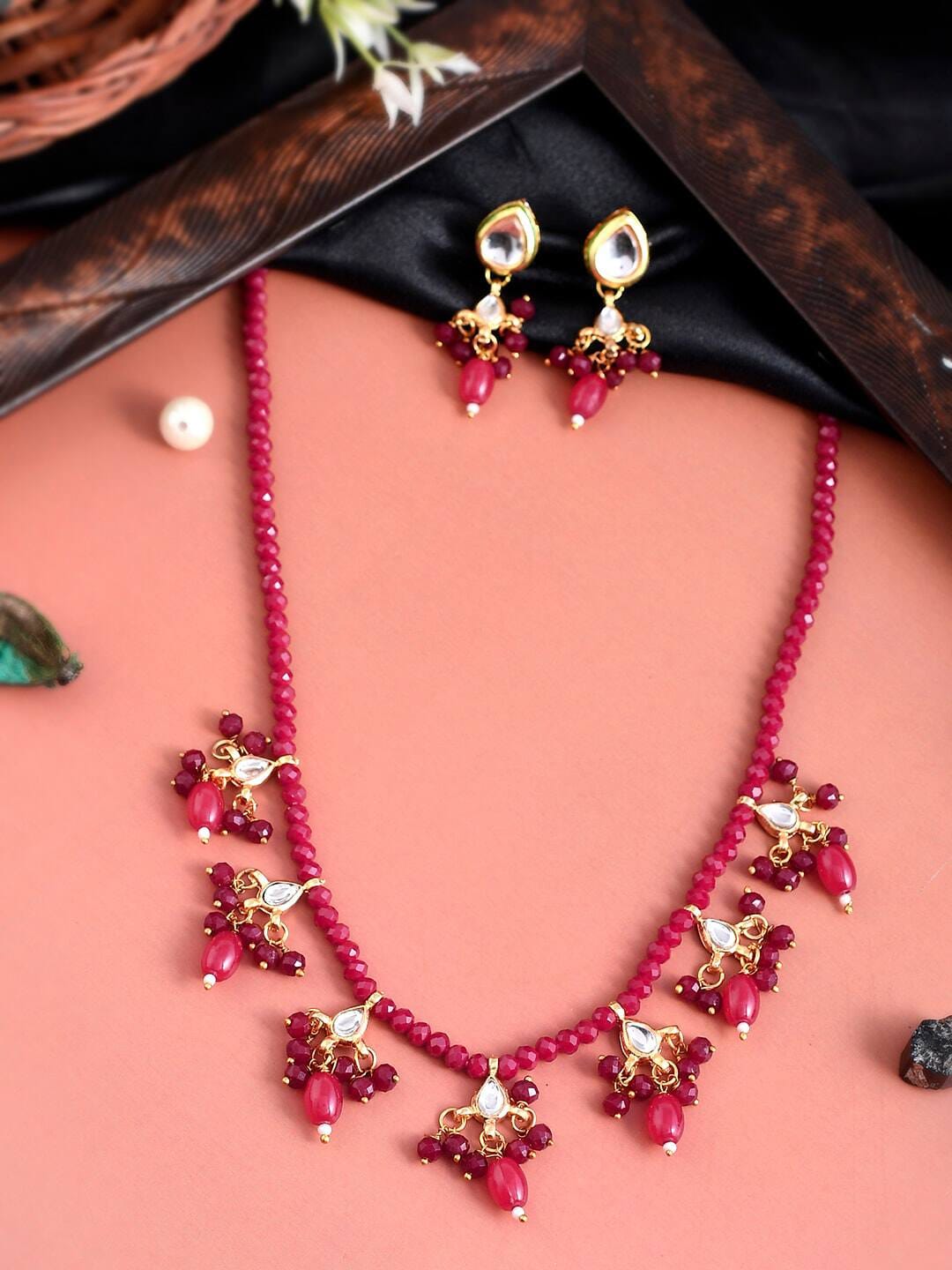 Gold-Plated Kundan-Studded & Beaded Nacklace