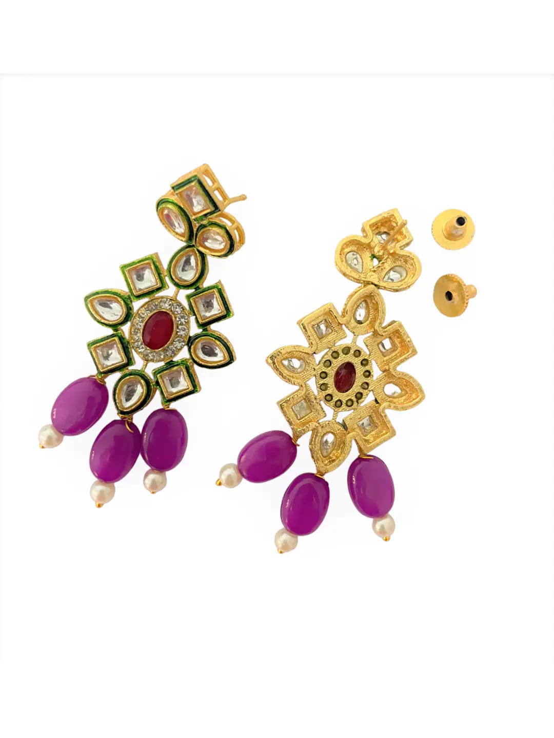 Heavy Meenakari Kundan With Emarald Green Drop Stone Necklace